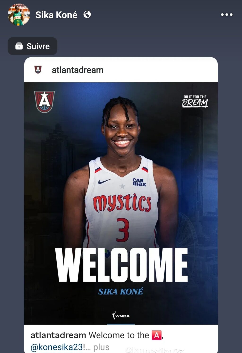 SAMEDI 16 AOÛT 2025 Annoncée du côté de l'Espagne , elle vient de signer avec 𝗔𝗧𝗟𝗔𝗡𝗧𝗔 𝗗𝗥𝗘𝗔𝗠 𝗲𝗻 𝗪𝗡𝗕𝗔. Abandonnée...