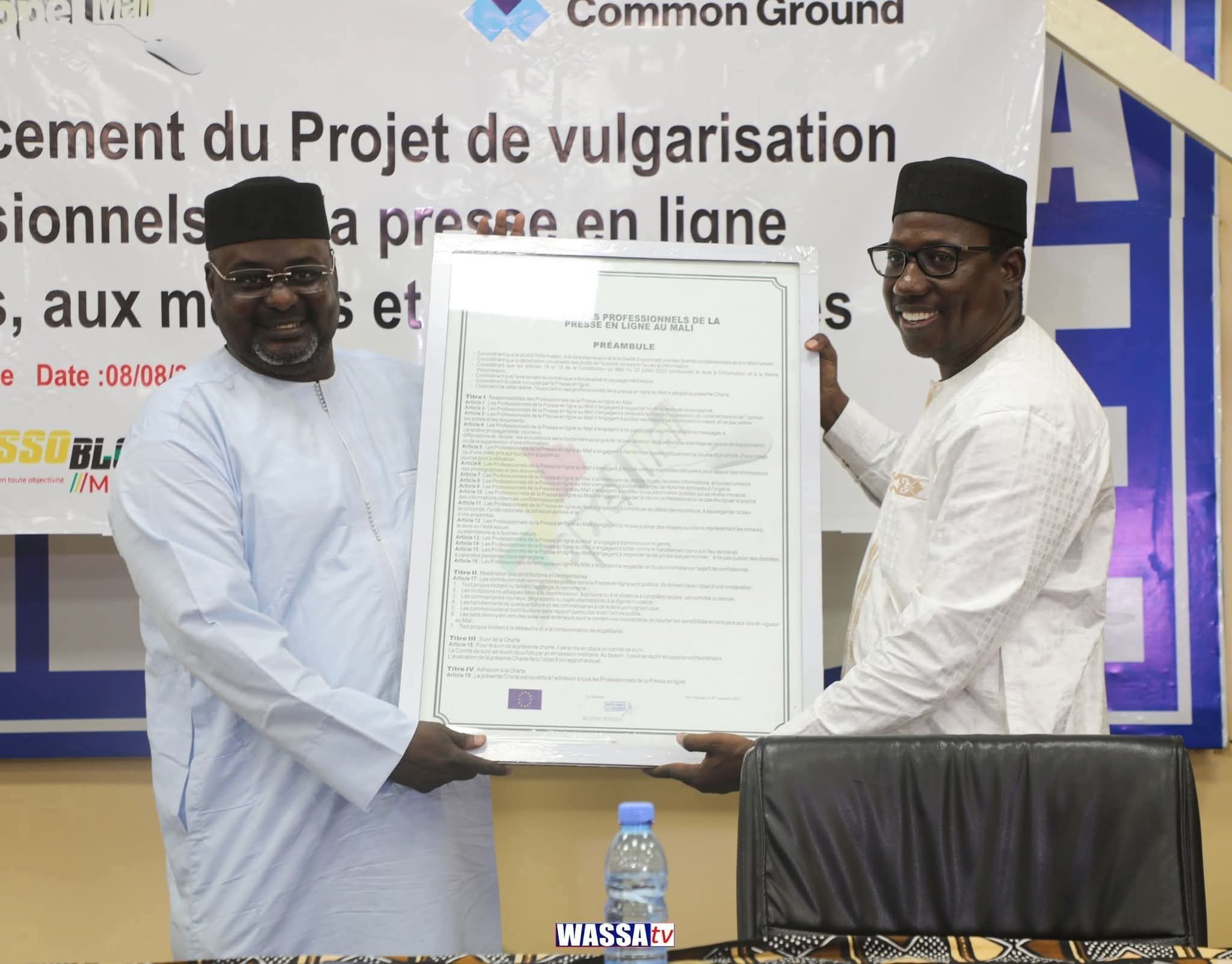 La cérémonie s’est clôturée par une remise symbolique de la charte aux représentants du ministère, de la Haute Autorité de la Communication (HAC) et de l’Union Européenne, marquant ainsi un pas important vers la promotion d’une presse en ligne responsable et professionnelle au Mali.
